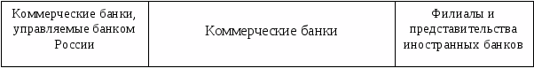К коммерческим банкам, основная доля уставного капитала которых принадлежит Баку России, относятся Сберегательный банк Российской Федерации, а также банки, расположенные за пределами территории Российской Федерации. В структуру коммерческих банков входят и специализированные банки, осуществляющие отдельные виды банковских операций. К ним можно отнести:
