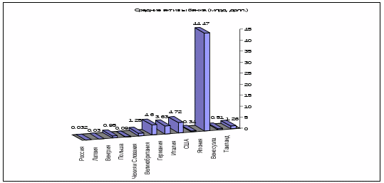 Один из самых лучших способов выяснить, что ждет нашу страну в ближайшей или более отдаленной перспективе - посмотреть на мировой опыт. В период 1995 г. международные сравнения свидетельствуют об уникальности российского опыта развития коммерческих банков. И главная особенность, бросающаяся в глаза - банков в России очень много. Однако число банков мало, что говорит экономисту. Можно использовать, например, средний объем активов, приходящийся на один банк. Иначе говоря, посмотреть, насколько беден или богат средний российский банк по сравнению со своим зарубежным собратом. Если мы возьмем этот показатель, то выяснится, что быстрое развитие российского банковского сектора происходило на довольно зыбкой финансовой основе. Большинство банков в международном масштабе выглядят настоящими карликами (см. Схема 1.5 2).