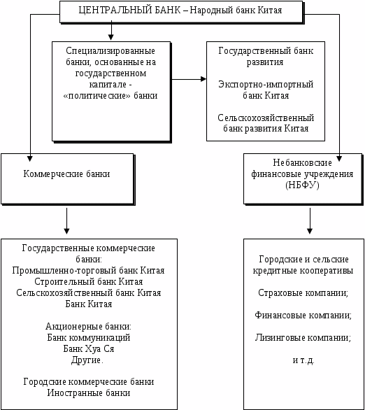 Государственные банки занимали строго регламентированное место в стратегии проводимых реформ. Как и во всех странах социалистического лагеря, в Китае существовала одноступенчатая банковская система. Центральный банк и государственные банки были частью централизованного аппарата государственного планирования. В задачи, стоящие перед банками в тот период, входило выполнение обязанностей по финансовому обеспечению политических и экономических планов государства, поддержанию стабильности государственных предприятий, предотвращению неконтролируемой безработицы и, следовательно, обеспечению необходимой экономической безопасности проводимых реформ. От назначенных государством банкиров требовалось лишь финансирование реформ, т.е. аккумуляция сбережений населения и их распределение в соответствии с проводимой государством экономической политикой.