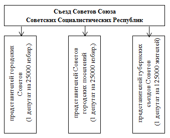 Самым важным по значению и первым по времени возникновения стал орган, выражающий верховенство трудящихся - съезд Советов Союза ССР (Рис. 2).