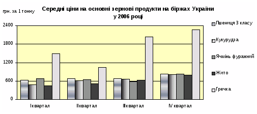 Впродовж 2006 року середні ціни на зернові продукти, які склалися внаслідок проведених біржових торгів, по окремих видах значно коливалися.