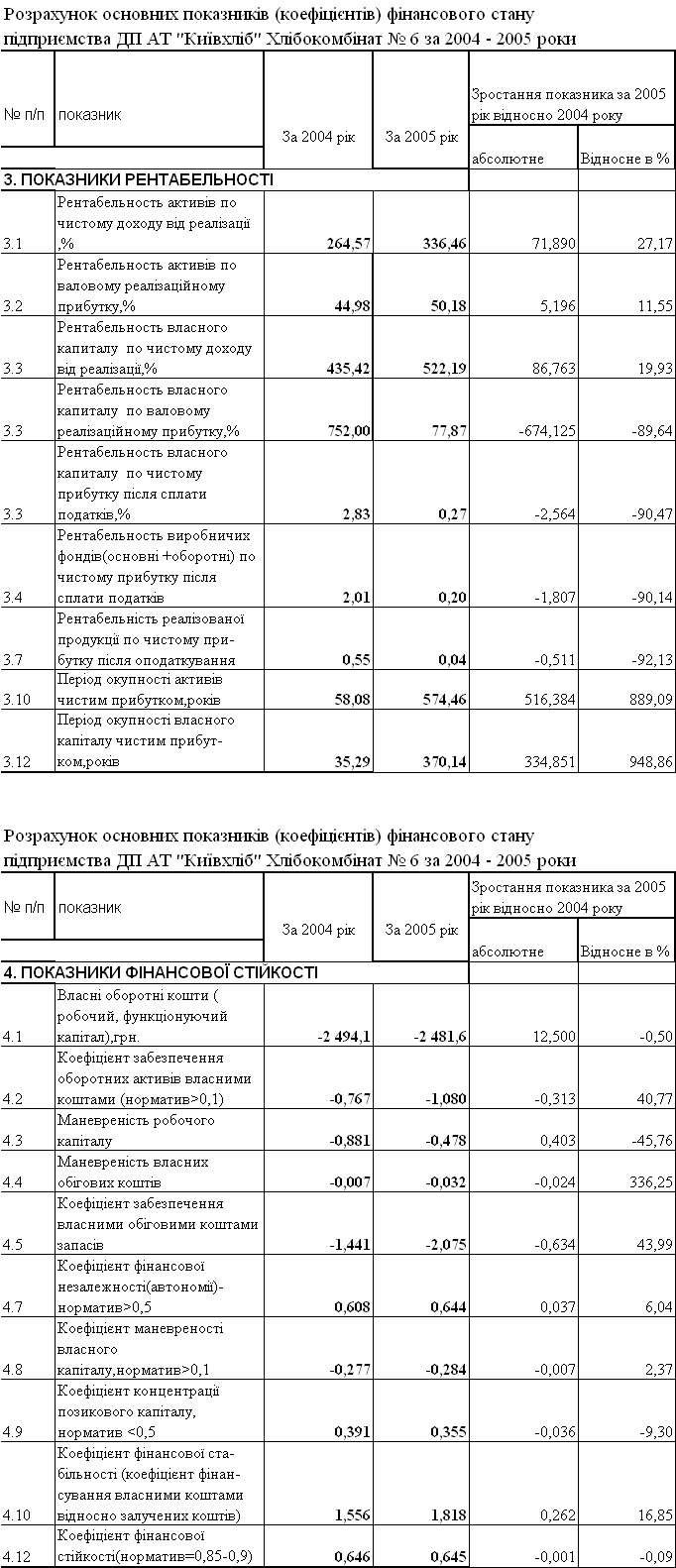 В табл.3.1 наведені результати розрахунку рейтингу кредитоспроможності ДП АТ «Київхліб" Хлібокомбінат №6 за 2004 2005 роки.