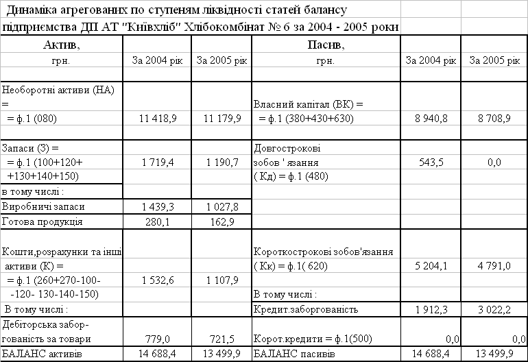 РОЗДІЛ 2. ЕКОНОМІЧНА ДІАГНОСТИКА ДІЯЛЬНОСТІ ПОЗИЧАЛЬНИКА ДП АТ «КИЇВХЛІБ» ХЛІБОЗАВОД № 6 У 2004 – 2005 РОКАХ