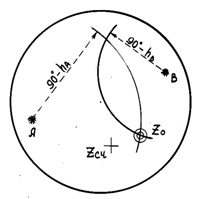 Это определение позволяет обосновать метод нанесения кругов равных высот на земной глобус и определения места судна по высотам светил графическим способом.