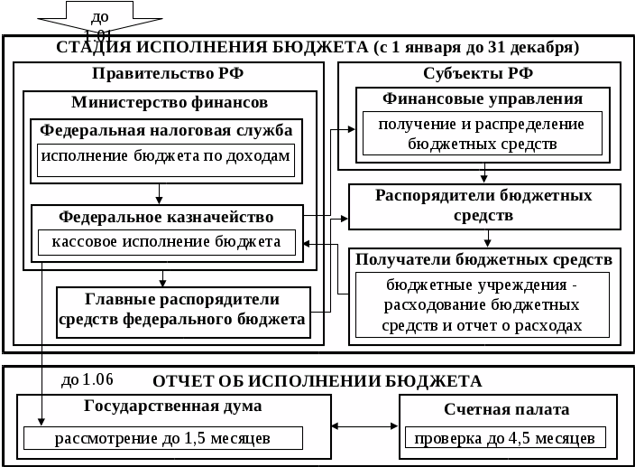 Весь бюджетный цикл делится на стадии бюджетного процесса: