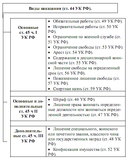 При выборе вида и размера уголовного наказания суды исходят из требований санкций статей Особенной части УК РФ, в соответствии с которыми виновному и назначается наказание. Наряду с положениями, закрепленными в статьях Особенной части УК РФ, суды должны руководствоваться и положениями Общей части УК РФ. Так, при вынесении наказания необходимо установить, чтобы лицо было виновно в совершении общественно опасного деяния (ст. 14 УК РФ), какова форма вины (статьи 25, 26 и 27 УК РФ), достигло ли оно необходимого для ответственности возраста (ст. 20 УК РФ) и было ли оно вменяемым (статьи 21-22), не было ли совершено деяние при обстоятельствах, исключающих его преступность (статьи 37-42 УК РФ).