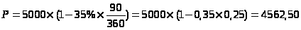 Дисконтный вексель на сумму 5000 рублей со сроком платежа 90 дней. Банковская ставка 35% годовых. Рассчитать по какой цене банк должен разместить данный вексель.
