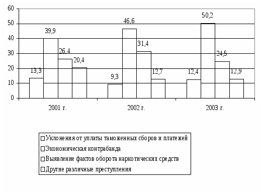 Таблица 2 - Удельный вес таможенных преступлений за период 2005-2007 г.
