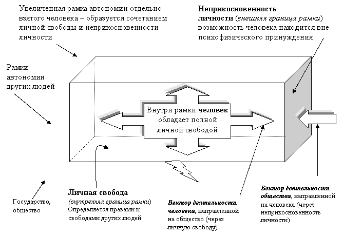 Таким образом, право на свободу и личную неприкосновенность включает в себя физическую неприкосновенность, психическую неприкосновенность, нравственную неприкосновенность, личную безопасность.