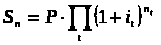 Выражения (1) и (2) называют формулой простых и, соответственно, сложных процентов, а под процентными деньгами или, кратко, процентами понимают величину дохода (приращение денег) I>n>=S>n>-P. В финансовых вычислениях в случае меняющихся во времени процентных ставок используют очевидные обобщения правил (1), (2):