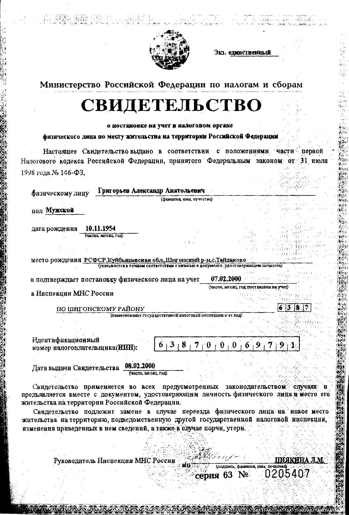 55 Дело № 2-301 из архива Шигонского районного суда.