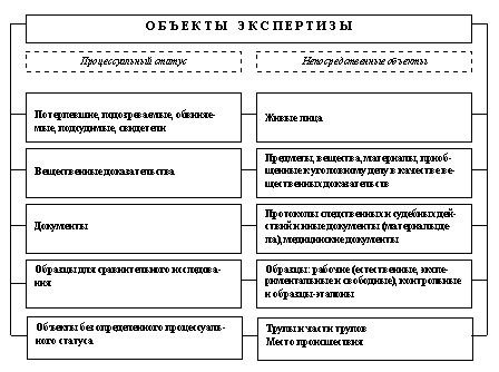Таким образом, следует различать непосредственные объекты судебной экспертизы и объекты в соответствии с их процессуальным статусом (сх.. 3).