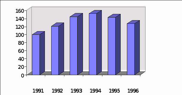 4 Статистические данные из отчета о деятельности подчиненных органов и подразделений по укреплению правопорядка, раскрытию и расследованию преступлений на 1996г. Газета “ Щит и меч ” февраль 1997г.