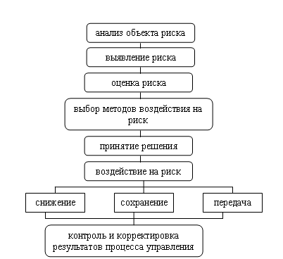 Управление риском (риск-менеджмент) – многоступенчатый процесс, цель которого в уменьшении или компенсации ущербов для объекта при наступлении неблагоприятных событий1.