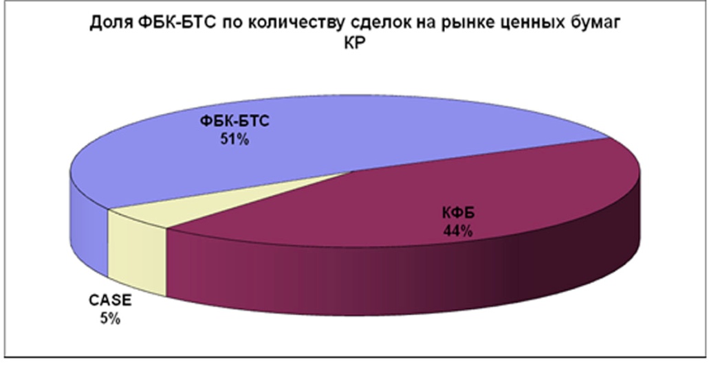 За 2010 год на торговой площадке «Фондовая биржа Кыргызстана – БТС» было заключено 810 сделок, общим объемом 572,476 млн.сом с количеством ценных бумаг 10 824 942 штук. В 2010 году ЗАО «Фондовая биржа Кыргызстана - БТС» заняло первое место по количеству и объему совершенных сделок с корпоративными акциями и облигациями на рынке ценных бумаг КР. Доля биржи за 12 месяцев 2010 года по количеству заключенных сделок составляет 51% всех заключенных сделок, а по объему сделок доля биржи составила 40% общего объема сделок рынка ценных бумаг Кыргызстана. Данный факт свидетельствует о том, что торговая площадка Фондовая биржа Кыргызстана была и остается наиболее привлекательной для брокеров и дилеров. Сделки совершались с корпоративными акциями и облигациями 128 компаний различных отраслей экономики.