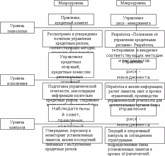 Рассматривая управление как воздействие, управление кредитным риском в банке можно определить как организованное воздействие субъекта управления (сотрудники банка, осуществляющие деятельность по кредитованию заемщиков и руководящий персонал) на объект управления (кредитный риск и деятельность сотрудников, задействованных в кредитных операциях) с целью снижения поддержания на допустимом уровне показателей кредитного риска банка.9 Центральную роль в банковской деятельности играет управление кредитными рисками. 10