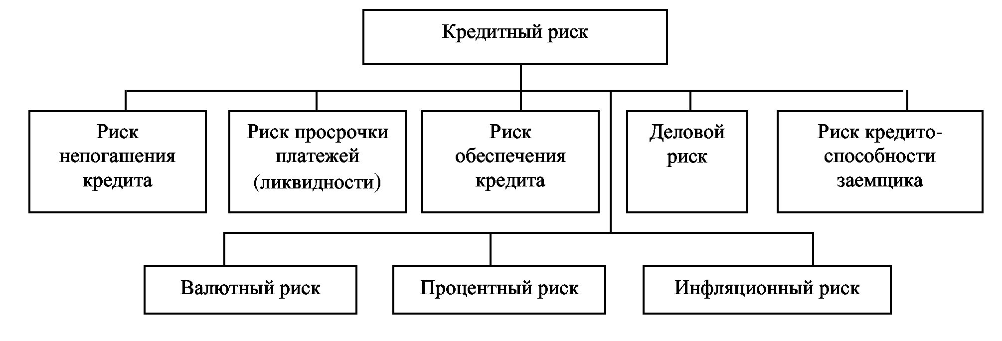 Структура кредитного риска неоднородна. Выделяются так же другие виды кредитного риска: