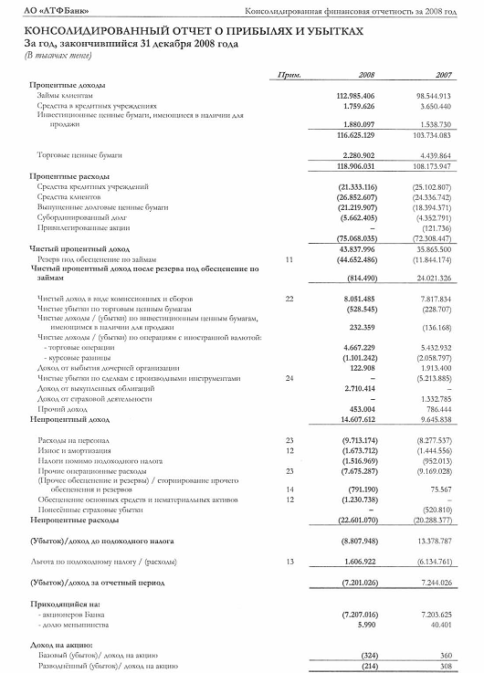 Согласно законодательству РК, как и любой коммерческий банк Казахстана, АО «АТФБанк» ежегодно представляет финансовую отчетность в соответствии со стандартами финансовой отчетности, которая дает достоверное представление о финансовом положении Банка.