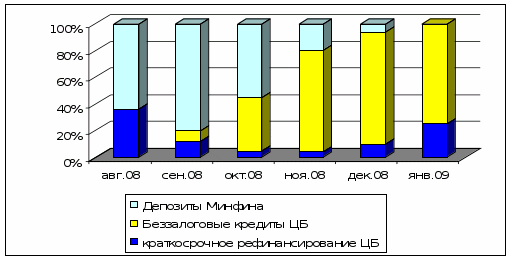 - административные меры в отношении участников рынка, проводимые ЦБ РФ совместно с ФСФР: приостановление права коммерческих банков использовать короткую позицию по денежным средствам; недопущение их к операциям РЕПО; отстранение банков от торгов в случае их игры на понижение котировок ОФЗ и корпоративных облигаций.