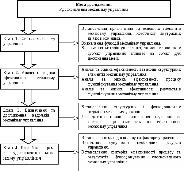 Удосконалення механізму управління потребує виконання певної послідовності дій щодо синтезу механізму, його аналізу і визначення недоліків, розробки рекомендацій з поліпшення функціонування механізму управління. Визначено, що структурно-функціональний підхід до розуміння сутності та змісту механізму управління є найбільш прийнятним для розгляду механізму державного управління як об’єкта удосконалення (рис. 1).