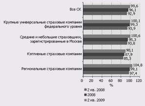 По данным за 1-ое полугодие 2008 года значение комбинированного коэффициента убыточности превышало стопроцентный уровень у менее чем трети российских страховых компаний, то в 1-ом полугодии 2009 года значение этого показателя приблизилось к 50%. Одновременно у каждой десятой страховой компании комбинированный коэффициент убыточности превысил 120%.