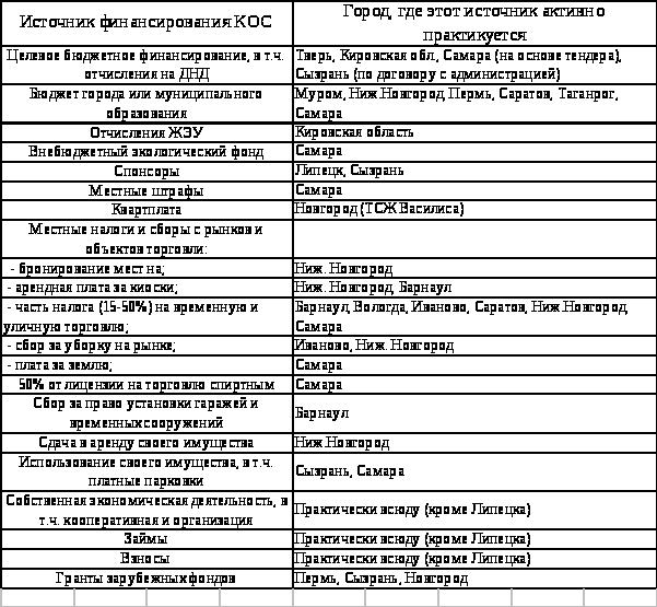 2. В настоящее время существуют проблемы с финансовой основой ТОС, в особенности в дотационных регионах (например, в Курганской области). Чтобы органы ТОС могли нормально существовать, надо либо отдать им права собирать местные налоги и сборы с рынков, т.е. дать возможность органам ТОС опереться на мелкую и среднюю российскую буржуазию, либо стимулировать влияние зарубежных спонсоров на ТОС, т.е. дать возможность развиваться в нише ТОС зарубежному социально ориентированному капиталу. В реальности источники получения средств по разным субъектам РФ распределены следующим образом (табл. 126).