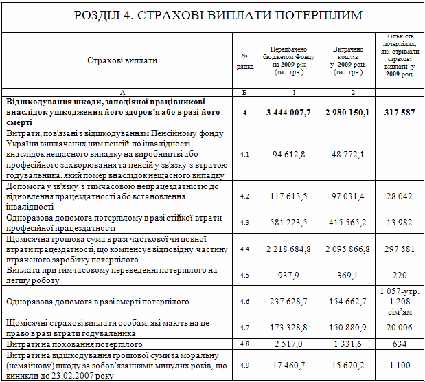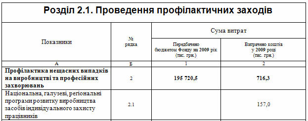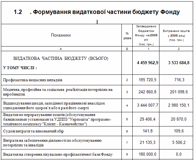 2.3 Аналіз виконання і формування бюджету Фонду соціального страхування від нещасних випадків на виробництві та професійних захворювань