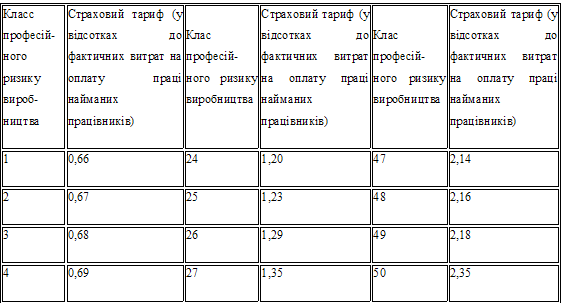 Для роботодавців ставки встановлюються відповідно до класів професійного ризику виробництва, до яких віднесено платників єдиного внеску, з урахуванням видів їх економічної діяльності. Класів професійного ризику виробництва наведено 67 та відповідна ставка внеску становить від 36,76% для першого класу до 49,7% для 67 класу професійного ризику виробництва. Слід звернути увагу, що для цивільно-правових договорів передбачена єдина ставка соціального внеску - 34,7%.