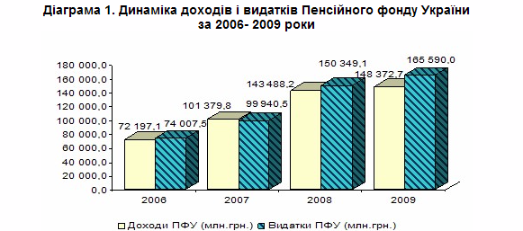 Динаміку доходів і видатків бюджету Пенсійного фонду за 2006-2009 роки наведено в діаграмі 1.
