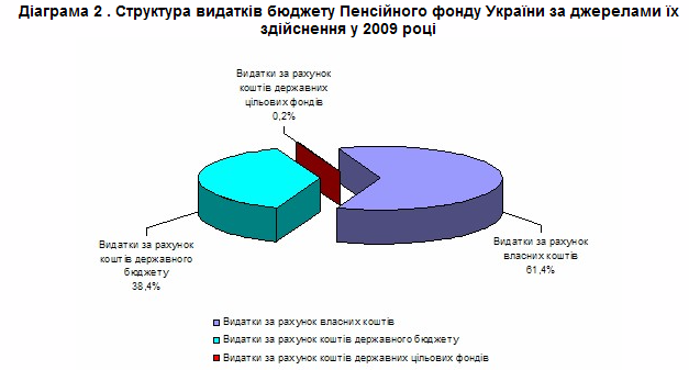 Порівняльний аналіз структури видатків Пенсійного фонду за джерелами їх здійснення за 2006-2009 роки показав зменшення частки власних видатків Пенсійного фонду з 84,1 відс. до 69,4 відс. та зростання частки видатків з державного бюджету з 15,3 відс. до 38,4 відсотка.