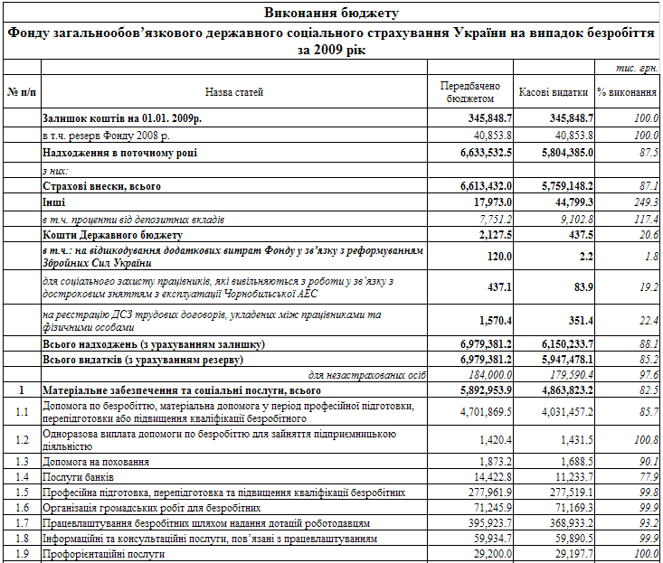 2.2 Аналіз виконання і формування бюджету фонду обов’язкового соціального страхування на випадок безробіття