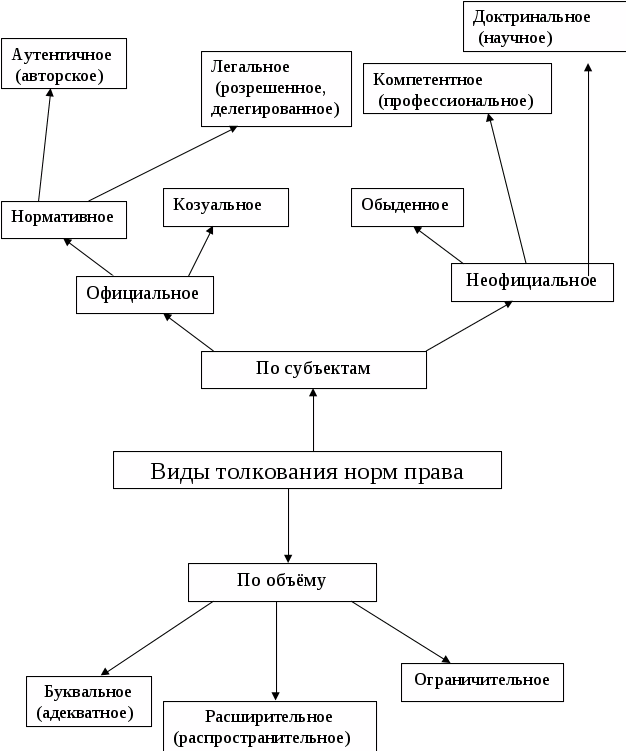Официальное толкование, в свою очередь, подразделяется на нормативное и козуальное и судебное