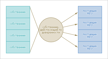 Договоры оказания услуг по содержанию и выполнению работ по ремонту общего имущества в многоквартирном доме заключаются со всеми или с большинством собственников помещений в доме. При этом, все или большинство собственников выступают в качестве одной стороны в договоре (рис 2).