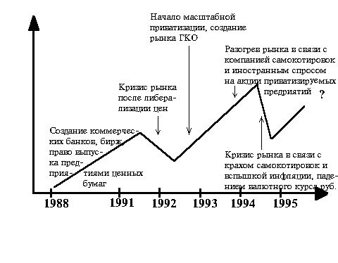 - резкое увеличение предложения ценных бумаг вследствие интенсивной деятельности по эмиссии акций приватизированных предприятий, государственных ценных бумаг, наряду с активацией компаний, которые занимались аккумулированием средств населения.