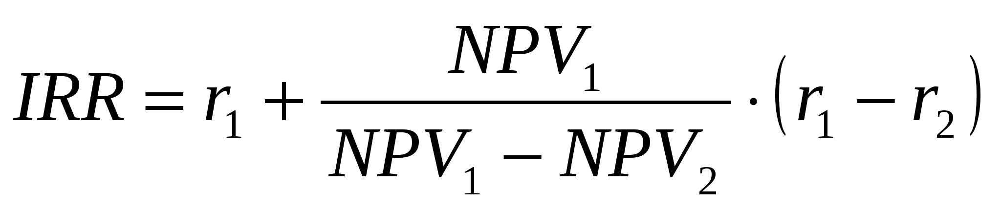 Отже, задля визначення внутрішньої норми дохідності (IRR) необхідно не менше двох розрахунків показника NPV.