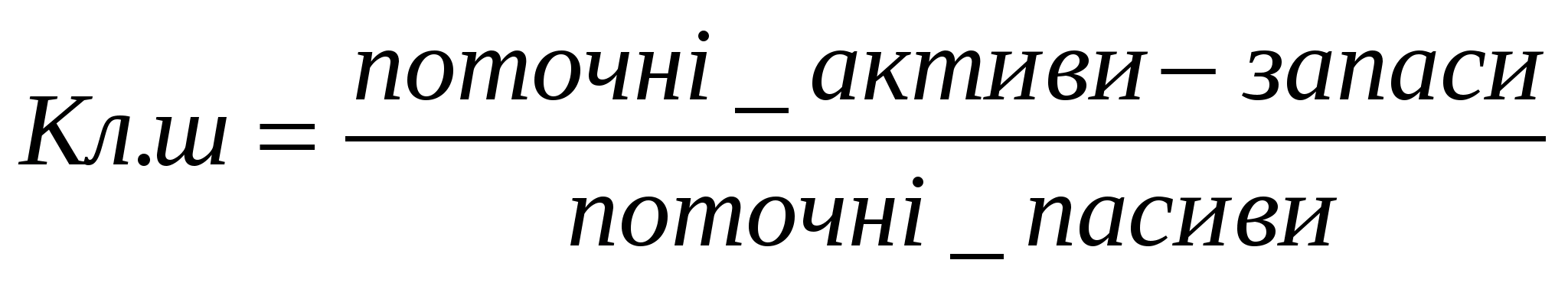 Коефіцієнт на кінець звітного періоду=1,187 і не відповідає нормативному значенню, це свідчить про те, що підприємство не здатне повністю розраховуватися із кредиторами за рахунок дебіторів протягом року. Потрібно зменшувати дебіторську заборгованість.