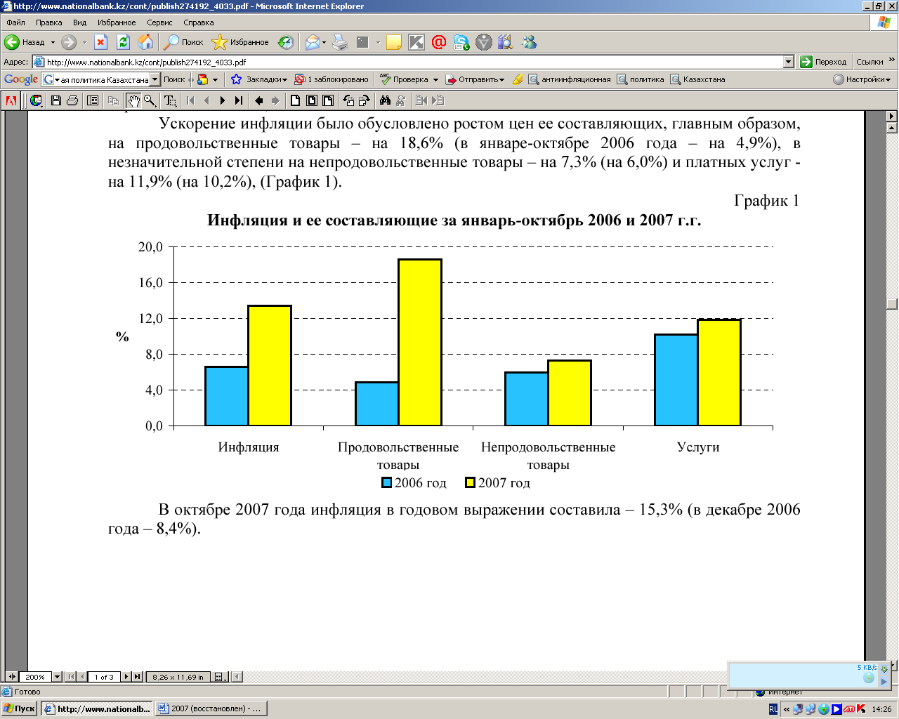 В октябре 2007 года инфляция в годовом выражении составила – 15,3%.