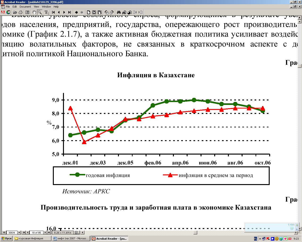 При этом по итогам 2006 года индекс потребительских цен, используемый в качестве индикатора инфляции, в Казахстане в 2006 году составил 8,6% в сравнении с 7,6% в 2005 году, по данным в государственном агентстве по статистике.