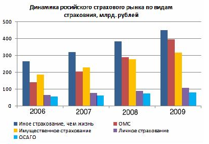 Основной тенденцией на страховом рынке России с учетом ОМС – Обязательного Медицинского Страхования являлось неуклонное увеличение объемов премий со среднегодовым темпом прироста 13,5%. Однако с началом экономическим кризисом, отрицательный эффект от которого проявился именно в 1 квартале 2009 года, наметилось значительное сокращение темпов роста рынка. За пять лет сборы премии по страхованию жизни упали в шесть раз, что вызвано очищением страхования жизни от налогосберегающих схем.
