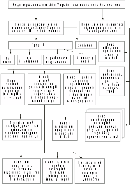 Згідно з Законом України "Про загальнообов'язкове державне пенсійне страхування", який набув чинності з 1 січня 2004 p., передбачено такі види пенсійних виплат із солідарної системи: