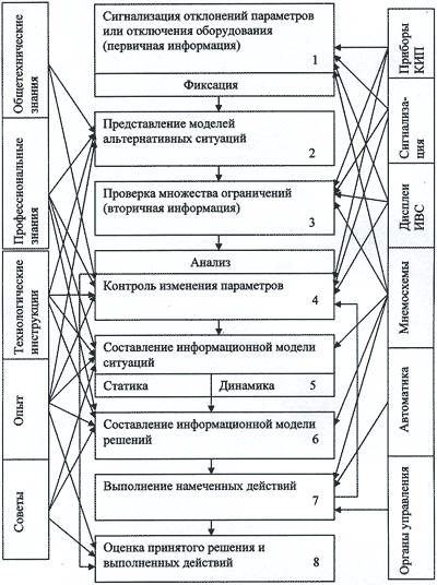 Решения, принимаемые на любом уровне иерархической структуры управляющего сообщества и являющиеся сигналами действия для оператора, должны учитывать в необходимом соотношении законы действия машины (блока АЭС).