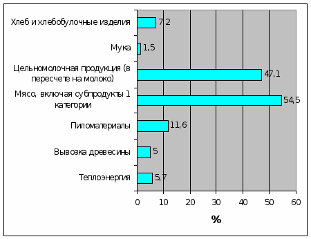 Стабильно работало в 2008 году ЗАО «Краснооктябрьский завод металлических изделий». На переоснащение оборудования предприятием вложено инвестиций около 20,0 млн. рублей. Неплохие результаты по итогам 2008 года можно отметить у ОАО «Марийская мясная компания», которое реализовало промышленной продукции на 291,3 млн. рублей или 118% к уровню 2007 года. Удельный вес района в общереспубликанском производстве основных видов промышленной и продовольственной продукции в 2007 году представлен на рисунке 3.
