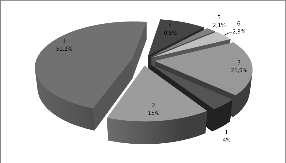 Так, анализируя структуру и динамику преступлений, совершенных в молодежной среде, можно сказать, что среди них наиболее распространены корыстные и корыстно-насильственные преступления (см. рис 1). Как известно, что основную массу преступлений такого характера, в молодежной среде совершают именно несовершеннолетние, то из этого следует, что совершение подростками довольно ограниченного круга преступных деяний обусловлено, прежде всего, спецификой их социального статуса: многие преступления просто не могут быть ими совершены, поскольку с 14 лет ответственность наступает лишь за ряд законодательно определенных преступлений. И хотя действующее законодательство предусматривает свыше 130 составов преступлений, за которые несовершеннолетние могут нести ответственность, из них реально подростками совершаются только 19 - 20 видов преступлений.