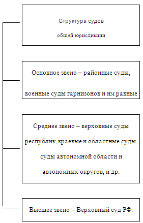 Система судов общей юрисдикции. Основным звеном в структуре судов общей юрисдикции является районный суд, наделенный широким объемом полномочий. Так, районный суд в пределах своей компетенции рассматривает дела в качестве суда первой и второй инстанции, является непосредственно вышестоящей судебной инстанцией по отношению к мировым судьям, действующим на территории соответствующего района. Помимо уголовных и гражданских дел, отнесенных к его компетенции, районный суд рассматривает материалы о подведомственных ему административных правонарушениях.