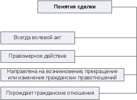 г) сделка порождает гражданские отношения, поскольку именно гражданским законом определяются те правовые последствия, которые наступают в результате совершения сделок.