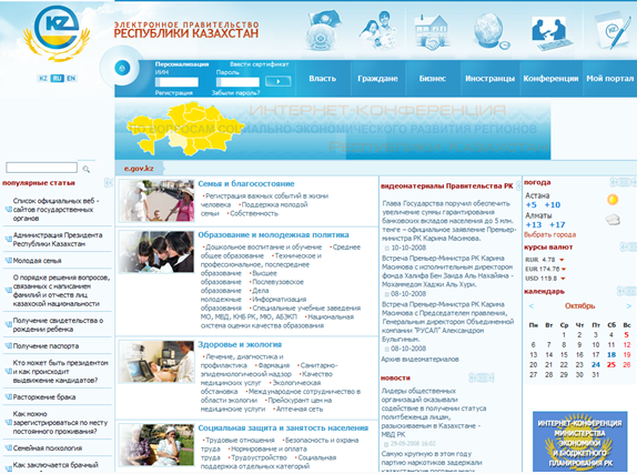 12 апреля 2006 г. состоялся запуск веб-портала "электронного правительства" в Интернете – www.e.gov.kz рис. 1.