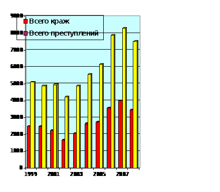 Так, по данным Управления внутренних дел г. Уссурийска с 1999 г. по 2008 г. наблюдается стабильный рост краж. 1