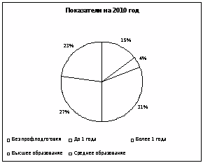 Из приведенных данных видно, что категория работников администрации МО Красный Октябрь, чья профессиональная подготовка более года, за отчетный период заметно изменилась, идет тенденция на понижение с 38% до 36%, а категория работников, профессиональная подготовка которых базируется на среднем образовании, возросла на 1% и составила 23% от общего числа работающих. Это говорит о том, что работники повышают свою профессиональную подготовку, переходя из одной категории в другую. В остальных категориях происходят незначительные колебания.