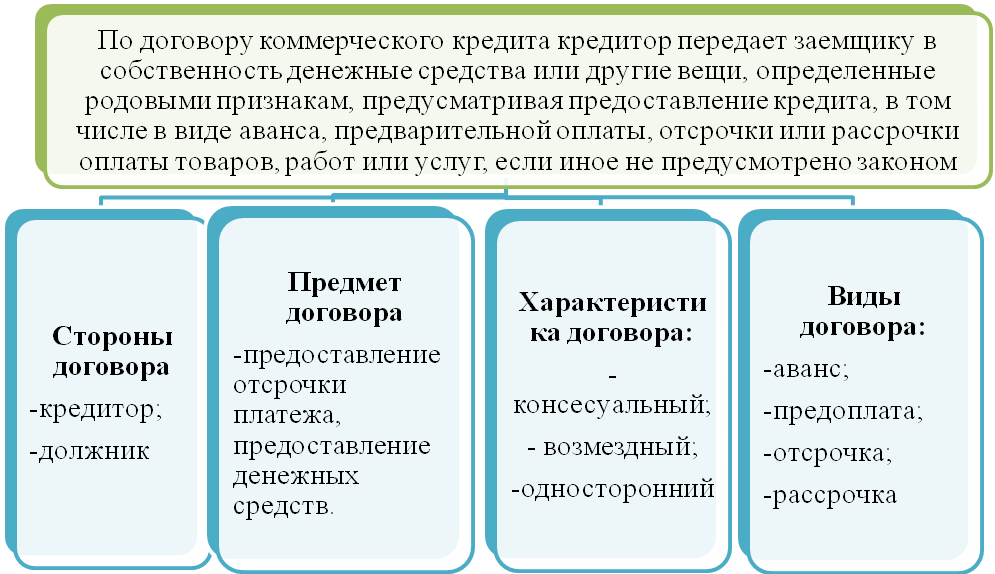 Коммерческий кредит представляет собой не самостоятельную сделку заемного типа, а условие возмездного договора, исполнение которого связано с передачей другой стороне денежных сумм или других вещей, определяемых родовыми признаками.