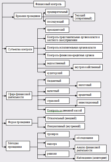 2. Составьте схему классификации финансового контроля по формам, видам, методам